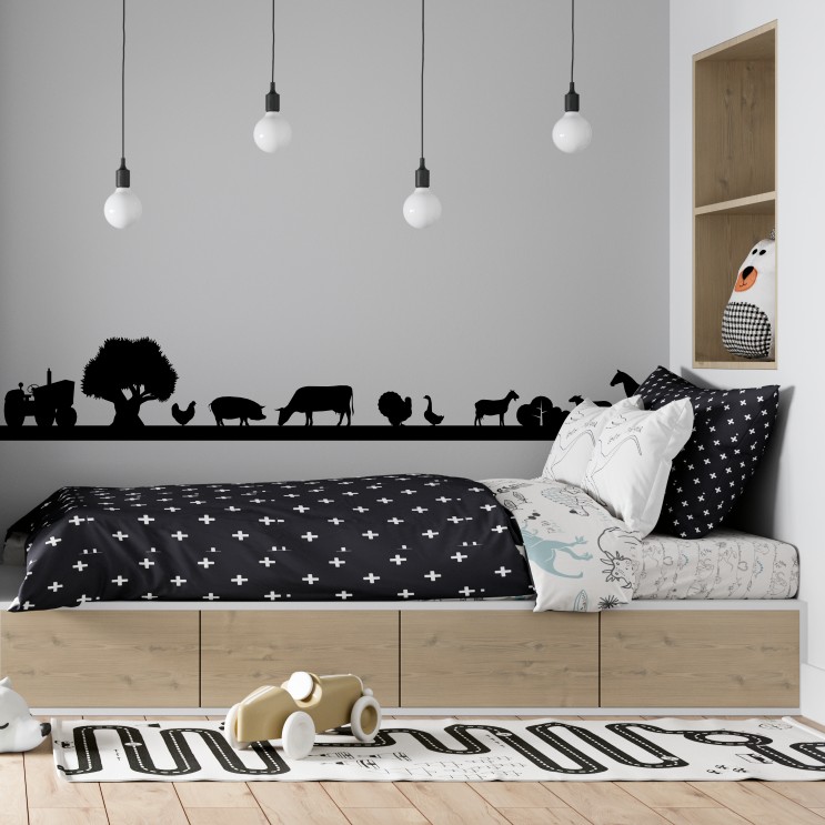 Met deze muursticker Boerenland haal je de rust en charme van het platteland rechtstreeks de kinderkamer in.